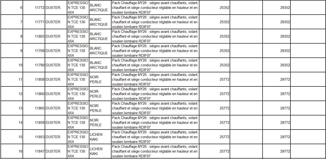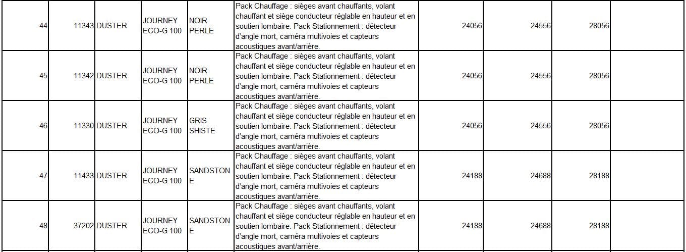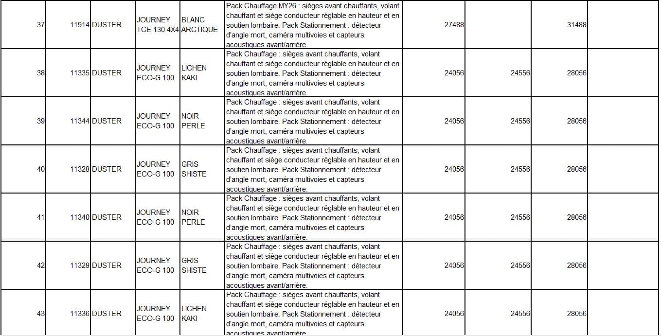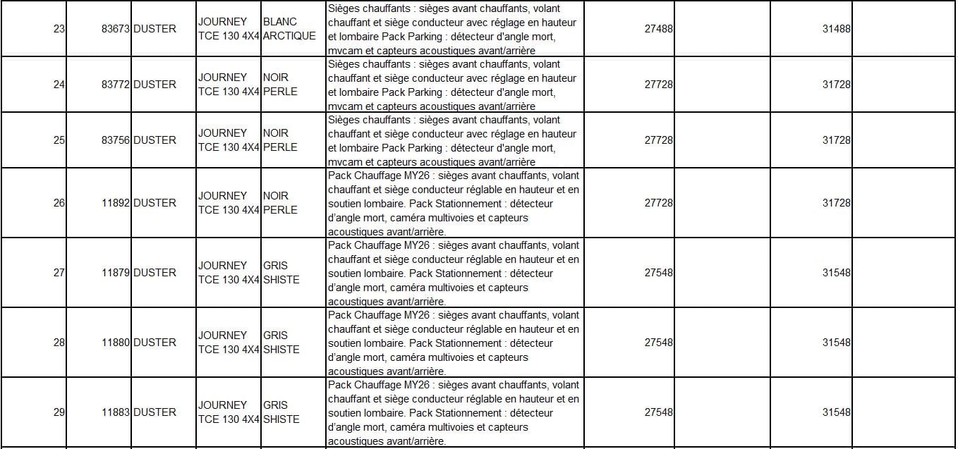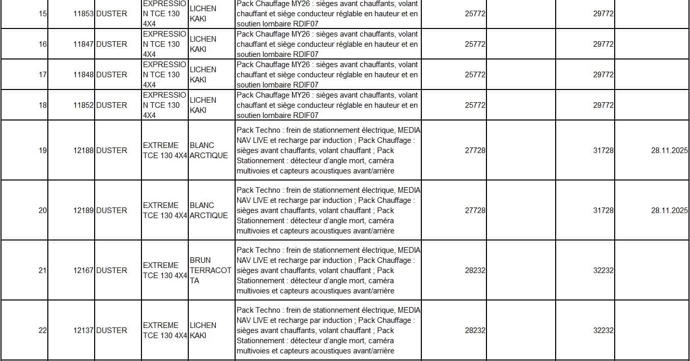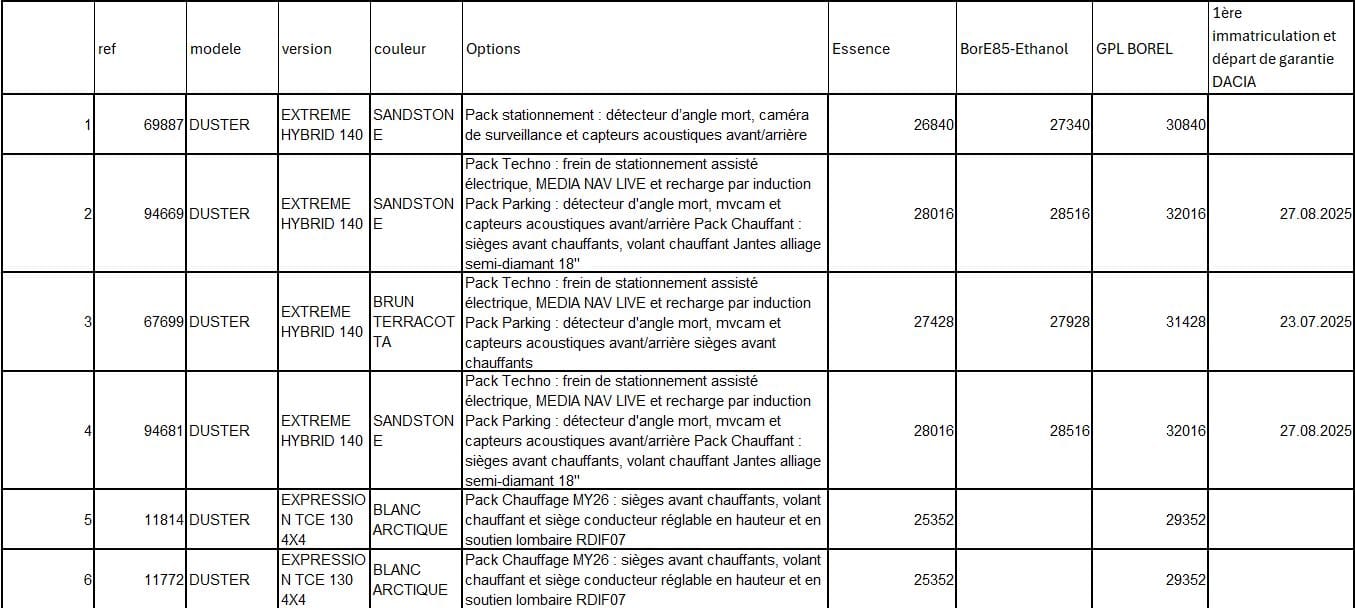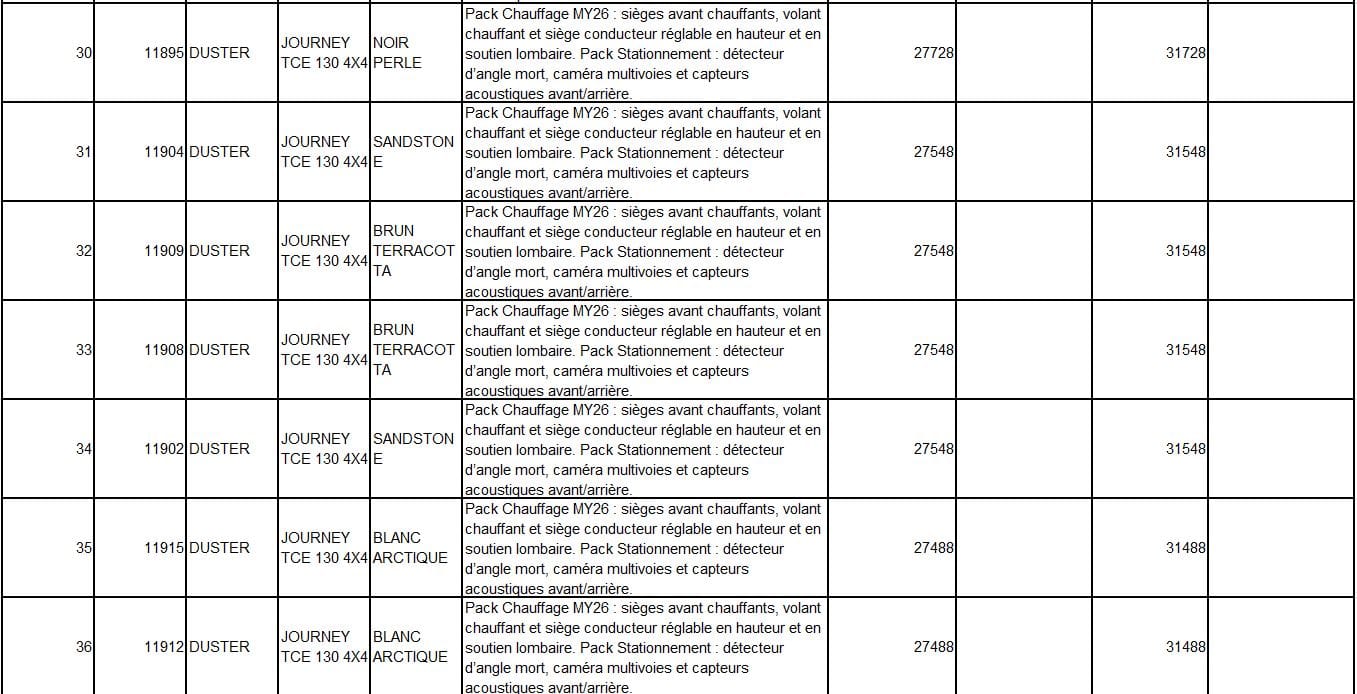 Liste de Duster neufs ou 0km en arrivage, disponibilité rapide