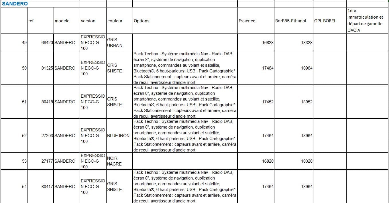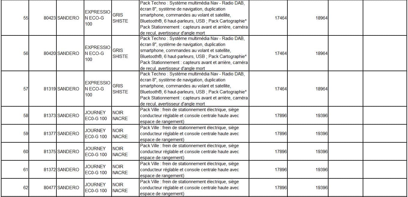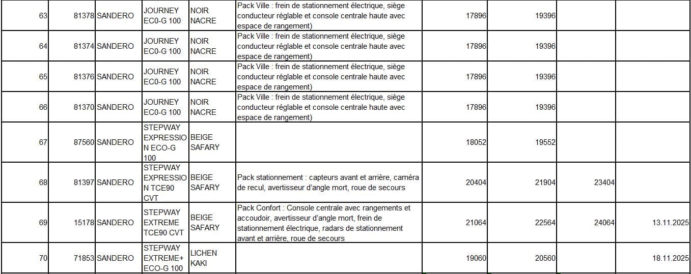 Liste de Sandero neuves ou 0km en arrivage, disponibilité rapide