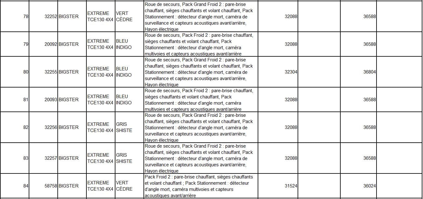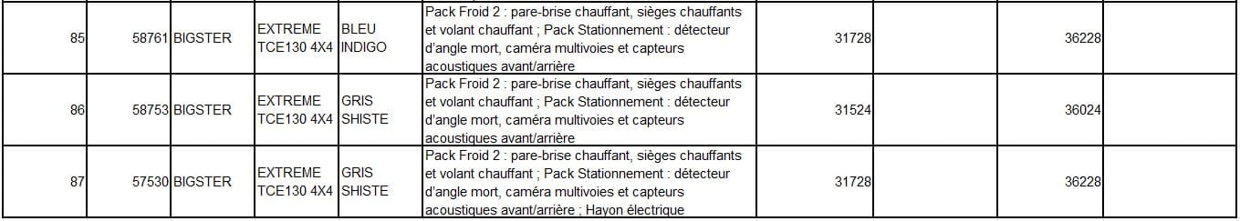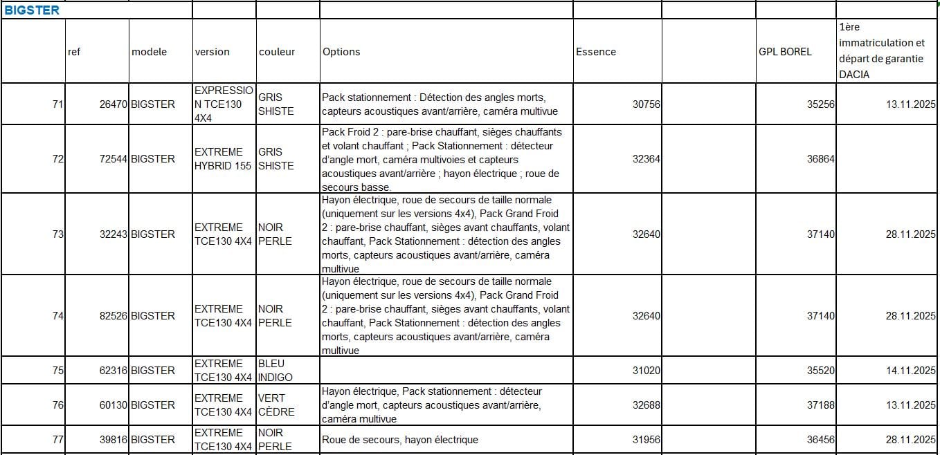 Liste de Bigster neufs ou 0km en arrivage, disponibilité rapide
